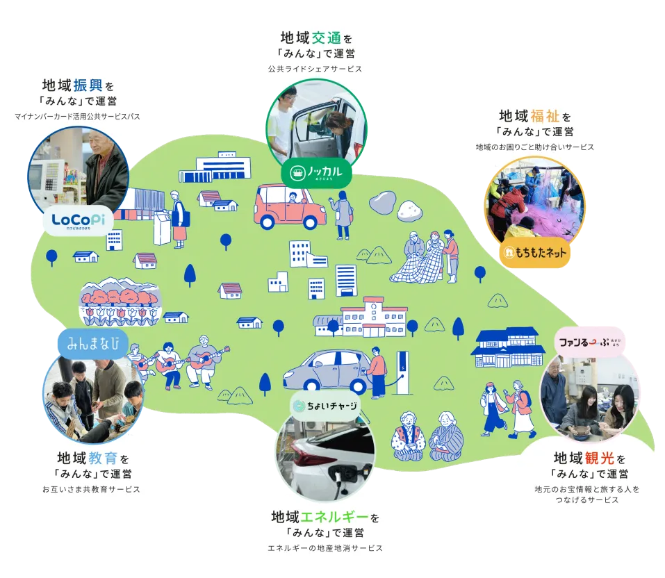 「未来を変えていく」町内のみならず、町外・日本中の地域とつながり、町の輪を大きなものにしていきます。