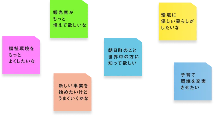 あなたの一言や行動が、朝日町の未来を動かします。