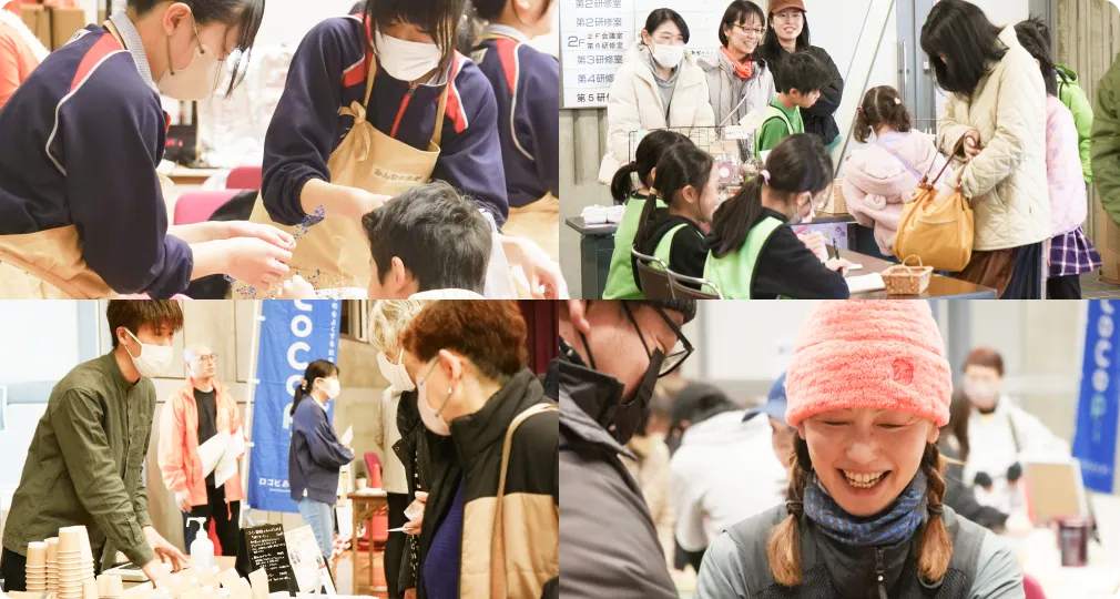 ●とやま生活協同組合(缶バッジづくり・物販)●なのはな(射的・ワークショップ・出張子ども用品おゆずり会)●ハレと瀞(ハーブティ雑貨販売)●北陸電力株式会社(ほくりんくアプリの便利な使い方、料金メニューの相談)●畑畳店×IGUSANOI(ミニ畳ワークショップ(無料)×イグサ小物販売)