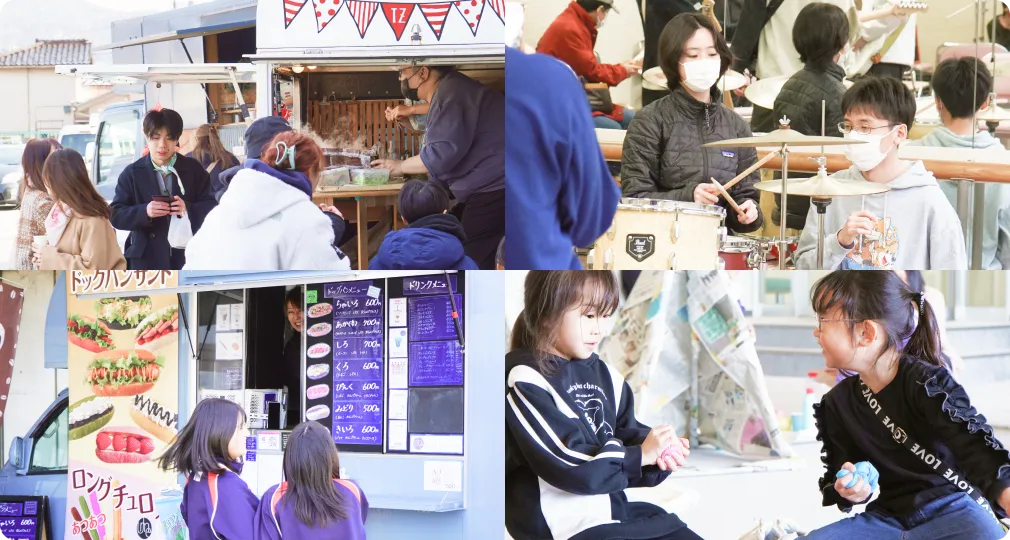 ●Ume Kitchen(ドッグパンサンド、チュロス、ドリンク 他)●KAMIBAN(オリジナルキューバサンド、ドリンク 他)●Matatabi(クレープ、ドリンク)●TAKOZAKI(たこ焼き販売)